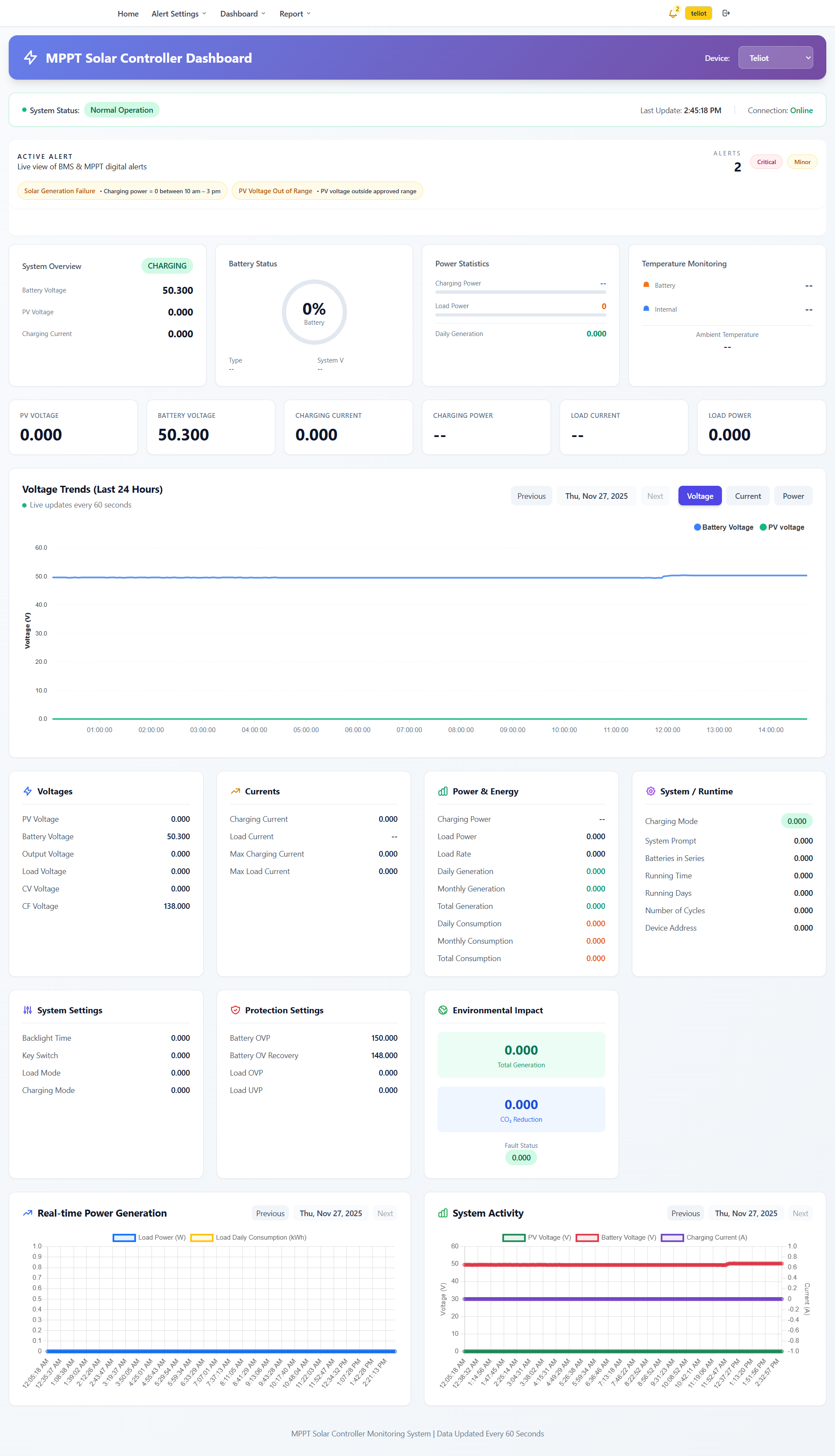 1️⃣ Solar Dashboard (MPPT Monitoring)